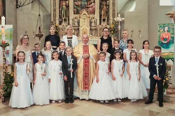 Am 5. Juli 2020 haben 15 Kinder aus unserer Pfarre ihre erste Heilige Kommunion empfangen. Dieses besondere Fest fand unter dem Mott „ Geborgen im Herzen Jesu“ statt.