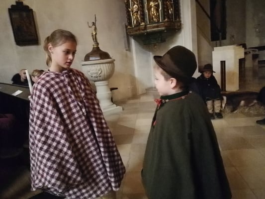 Das Neckenmarkter Herbergsuchen: Ein Spiel in der Kirche, das wahrlich auf eine lange Tradition in unserer Pfarre zurückblicken kann. Verfasst in Neckenmarkter Mundart von der Schriftstellerin Gertrud Zelger-Alten, wurde es bereits ab Anfang der 1970er Jahre aufgeführt. Damals waren die Darsteller hauptsächlich Kinder, und wenn sich einmal mehr Kinder zum Mitspielen einfanden und daher einige Zusatzrollen benötigt wurden, so hat Frau Zelger-Alten das Stück mit diversen Charakteren kreativ erweitert, seien es junge Hirten oder besorgte Dorffrauen.