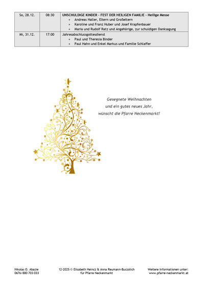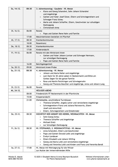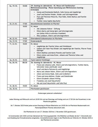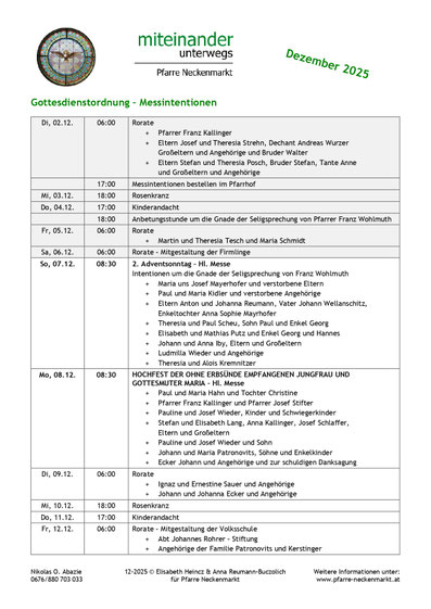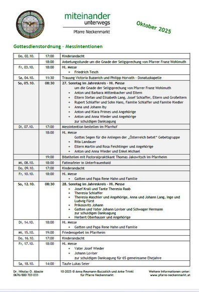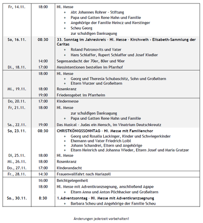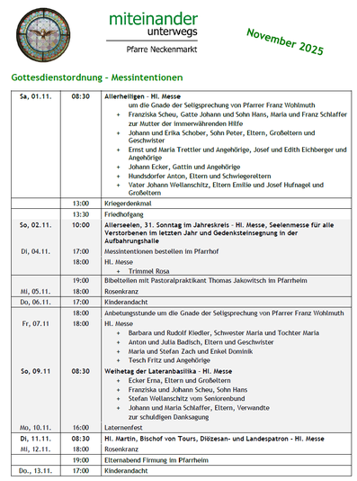 Sie sind hier: Aktuelles > Gottesdienstordnung/Messintentionen