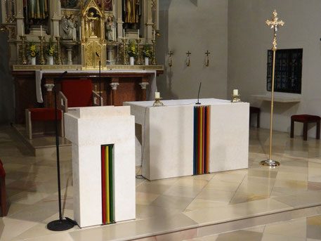 Der bisherige Volksaltar und der Ambo sind fast 40 Jahre als Holzprovisorien mit Steinimitation in der Kirche gestanden.